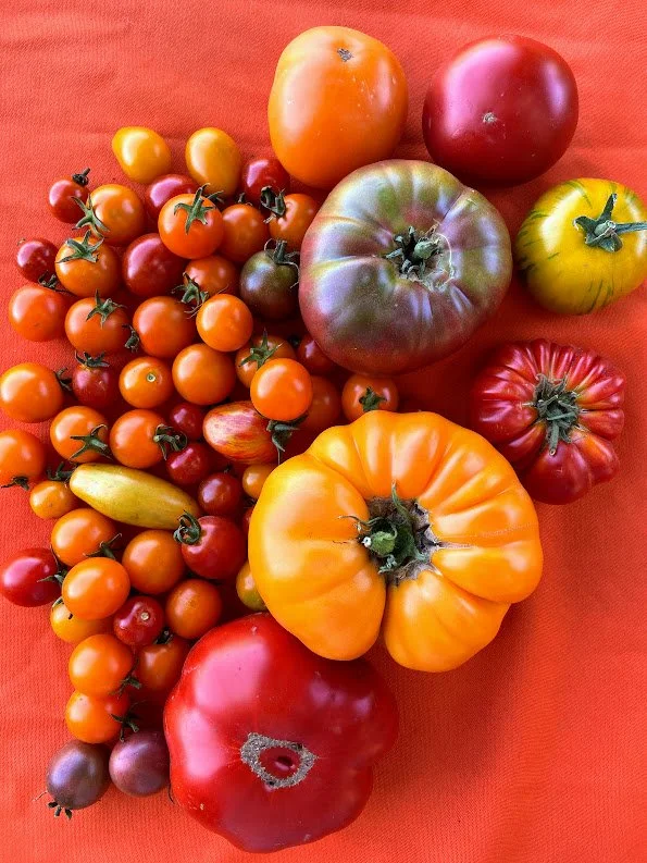 Meanwhile, the tomatoes are flowing in beautifully and deliciously—Heirlooms, Beefsteaks, Cherries and Romas are all on the ripe-and-ready- list. And as one of our folks reminded us last week, this is one of twoish months a year when tomatoes taste like tomatoes, so let’s DIG IN!